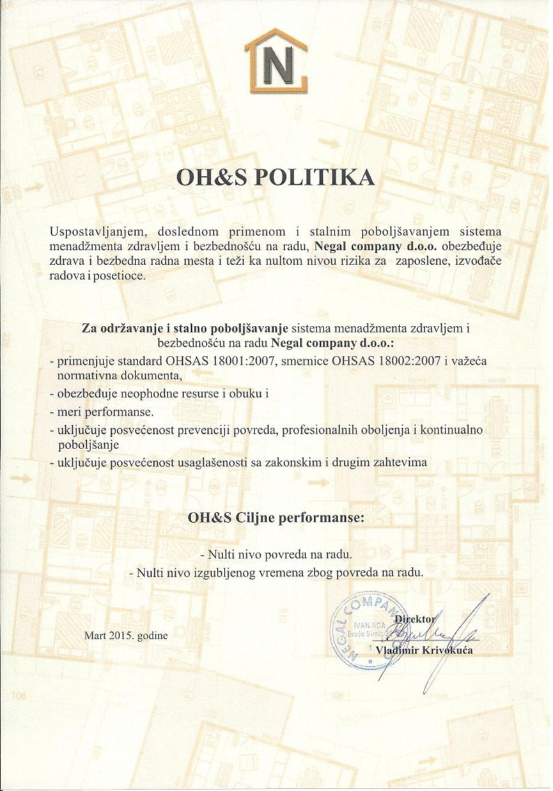Negal company d.o.o. u samom procesu proizvodnje energetski-efikasnih montažnih kuća od bioloških materijala najveću pažnju poklanja kontroli kvaliteta i očuvanju prirodne sredine. Uvedeni sistem kvaliteta ISO 9001:2015, ISO 18001:2007 i ISO 14001:2015 garantuje visok kvalitet izgradnje montažnog objekta, da se u toku izgradnje vodilo računa da se isključivo koriste prirodni ekološki materijali koji ne zagađuju prirodnu sredinu i koji nemaju bilo kakvog štetnog uticaja na ljudsko zravlje i da se prilikom rada primenjuju sve mere bezbednosti i zdravlja na radu.