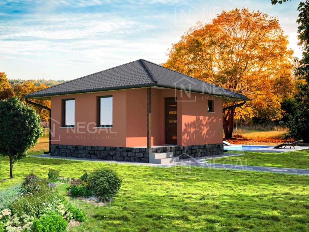 Vikend kuća iz kategorije Klasik. Jednostavne svedene forme sa krovom na četiri vode idealno se uklapa u prirodno okruženje. Ima sve funkcionalne celine za udoban boravak porodice tokom vikenda u prirodi.
